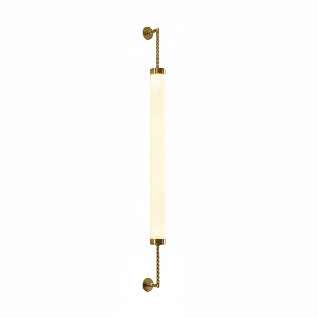Настенный светильник (бра) GRISELA by Romatti — воплощение современного минимализма с изысканными деталями. Элегантная вертикальная конструкция сочетает в себе металлический корпус с латунной отделкой и удлинённый матовый плафон, который мягко рассеивает свет. Лаконичный дизайн делает этот светильник универсальным элементом для любого интерьера — от классики до лофта.