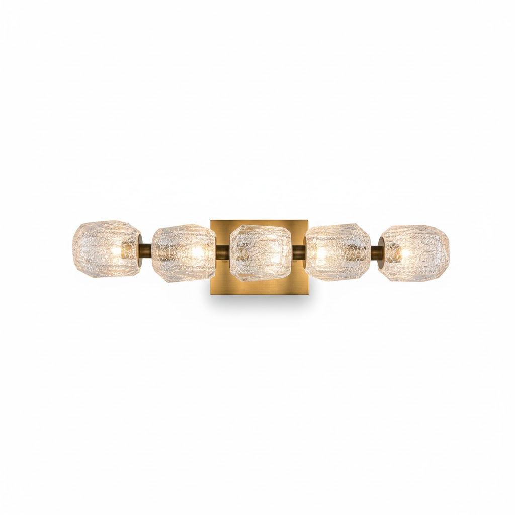 Этот настенный светильник представляет собой изысканное сочетание классической роскоши и современного ювелирного искусства. Изготовленная из высококачественного художественного хрусталя, он притягивает взгляд своей уникальной фактурой, напоминающей застывшие капли воды или драгоценные камни в огранке.