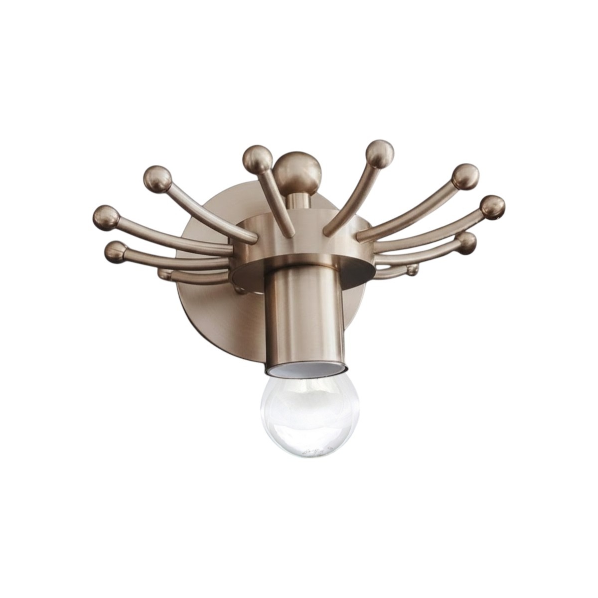Настенный светильник SELESTIO by Romatti — выразительный элемент освещения, сочетающий в себе элегантность и оригинальный дизайн. Металлическая конструкция с матовой отделкой и изящными изогнутыми элементами создаёт ассоциации с природными мотивами, при этом выглядит современно и стильно. Прозрачная стеклянная колба лампы добавляет лёгкости и визуально не перегружает пространство.