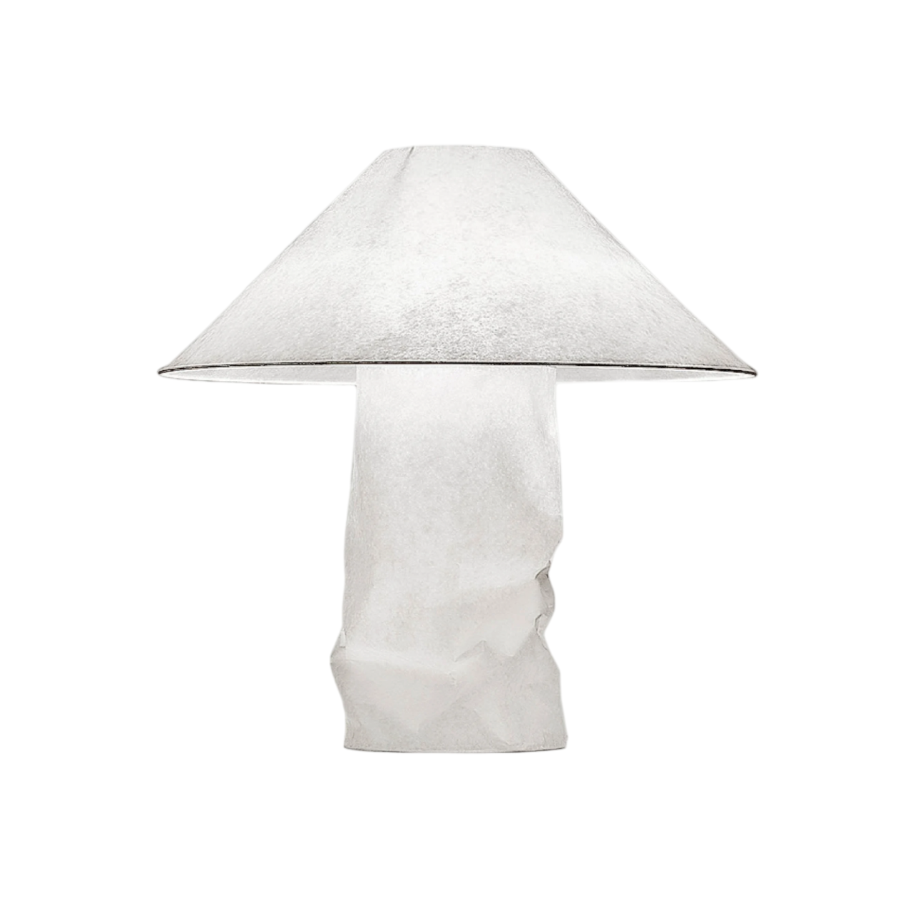 Настольная лампа PAMPE-LA by Romatti — оригинальное сочетание металла и бумаги, воплощающее в себе лаконичность и художественный подход к дизайну. Её отличительная черта — абажур в форме усечённого конуса, выполненный из фактурной бумаги светлого оттенка, который гармонично сочетается с основанием, имитирующим небрежно собранную ткань или бумагу. Минималистичный, но выразительный облик лампы делает её стильным акцентом в любом интерьере.