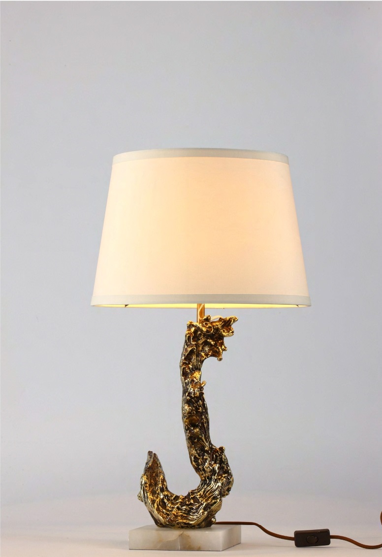 Настольная лампа TOMPER by Romatti — это элегантное произведение искусства, сочетающее в себе благородный мрамор и утонченную латунь. Ее основание представляет собой прямоугольный блок белого мрамора, который символизирует прочность и стиль. На мраморном стенде находится декоративная конструкция из латуни.