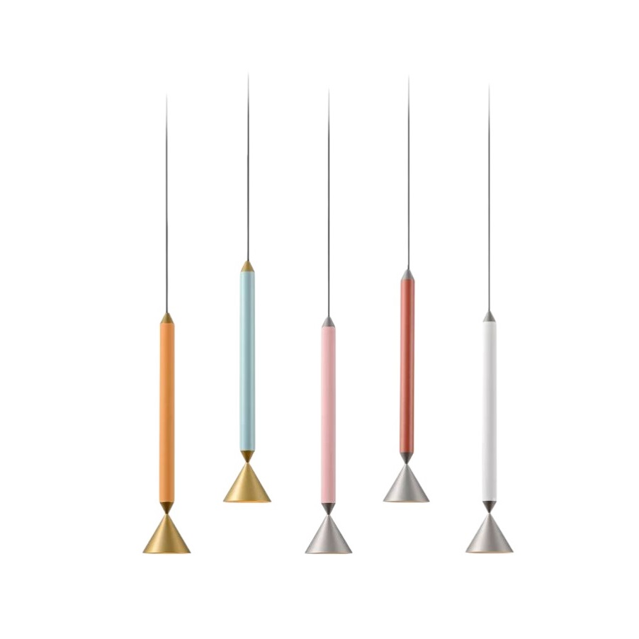 Подвесной светильник IRONITE by Romatti — это воплощение современного минимализма и изысканной лаконичности. Элегантная конструкция состоит из удлинённого цилиндрического корпуса, представленного в нескольких нежных пастельных оттенках: оранжевом, голубом, розовом, терракотовом и классическом белом. Контраст цвета корпуса и металлических конусообразных элементов внизу создаёт выразительный визуальный эффект. Чистые линии и геометричность форм делают светильник не только функциональным источником света, но и стильным акцентом в интерьере.