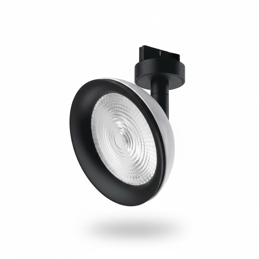Отличается компактной и изящной конструкцией, легко монтируется на трековую систему и создаёт равномерный световой поток без резких теней. Благодаря прочным, долговечным материалам и универсальному дизайну он органично впишется в любой интерьер — от минималистичного до лофтового. Такой светильник подойдёт для выделения витрин и экспозиций, зонирования пространства, а также для подсветки архитектурных деталей: картин, полок, ниш.