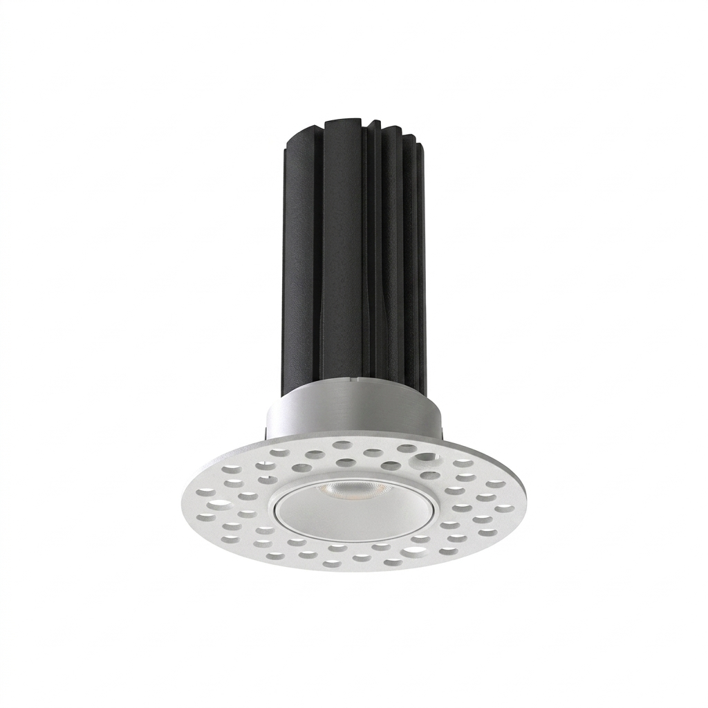 С технической точки зрения модель выделяется продуманной системой теплоотвода: массивный ребристый радиатор в верхней части корпуса эффективно отводит тепло от светодиода, что значительно продлевает срок службы устройства. Прочные пружинные зажимы гарантируют надежную фиксацию в монтажном отверстии, а качественные материалы корпуса обеспечивают долговечность и сохранение эстетичного вида. Этот светильник станет отличным выбором для тех, кто ценит технологичность и хочет создать в интерьере выразительную игру света и тени без громоздких осветительных приборов.